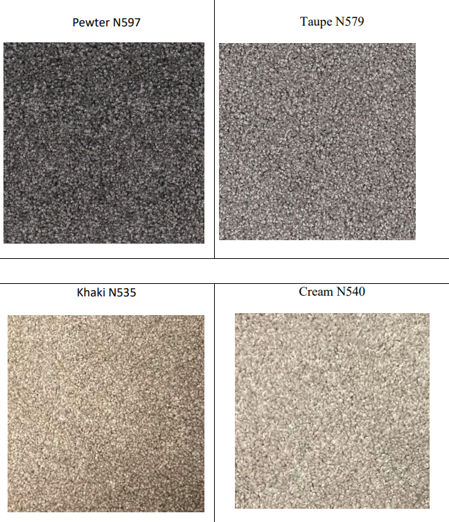 Colour Variation: Colour variation may occur between sample and production due to dye lot tolerances. Material Variation: Product specifications may change without notice due to raw material availability. Shading (Permanent Pile Reversal): Cut pile carpets have a propensity to shade. This is not a manufacturing fault. Further information can be obtained from the Carpet Institute of Australia. A chair pad is recommended under chair with roller castors to avoid premature and accelerated wear.